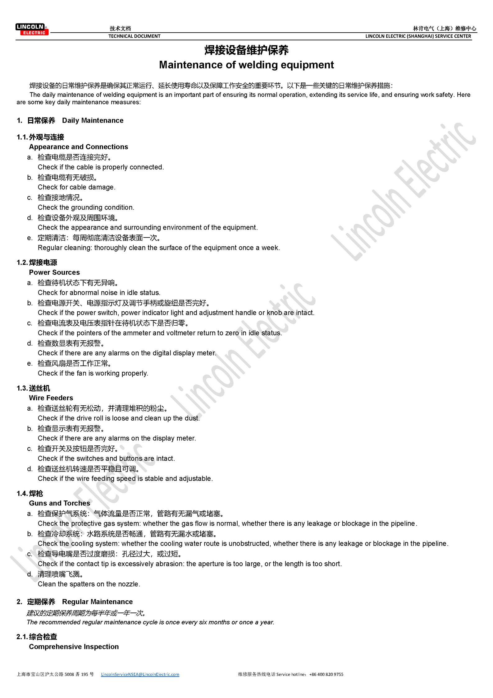 If you are in need of service with Lincoln Electric China Products, please contact: